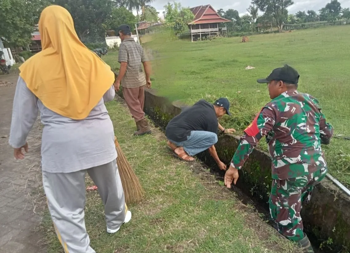 Pihaknya juga mengatakan, Sasaran gotong royong difokuskan pada saat itu, yakni melakukan pembersihan lingkungan terutama di selokan kanan kiri jalan desa yang penuh dengan material tanah dan rumput menghambat aliran air.