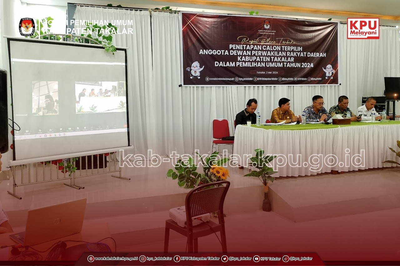 Koordinator Devisi Teknis kPU Takalar Ibrahim Salim yang hubungi media mengatakan bahwa, rapat pleno KPU kabupaten Takalar di laksanakan kemarin kamis (2/5) 2024 yang di pimpin ketua KPU takalar Hamdani Fattiiha dan menetapkan 35 kursih Anggoro DPRD kabupaten Takalar Periode 2024-2029