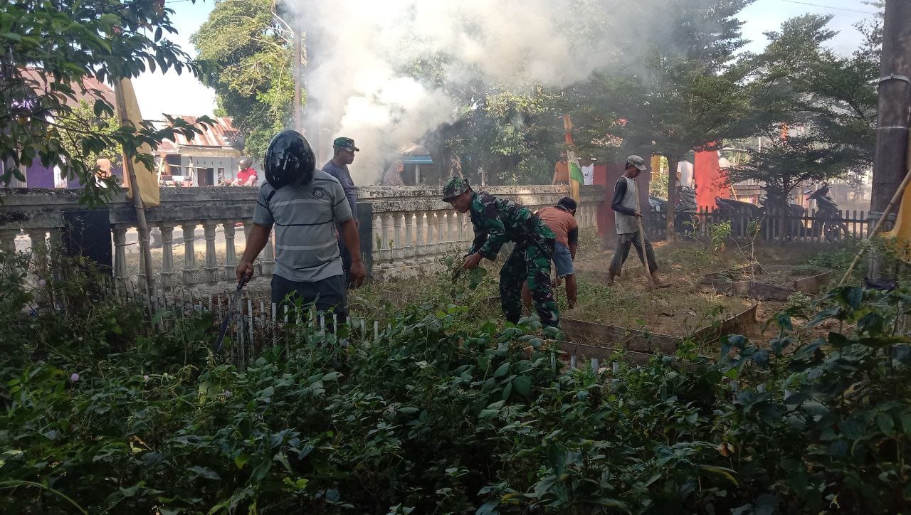 Dengan penuh semangat Personel Koramil 03 bersama dengan masyarakat bergotong royong melaksanakan pembersihan selokan dan halaman Kantor Lurah Bontolebang dimulai dari membersihkan sampah-sampah dan rumput liar, pengangkatan tanah dari selokan.