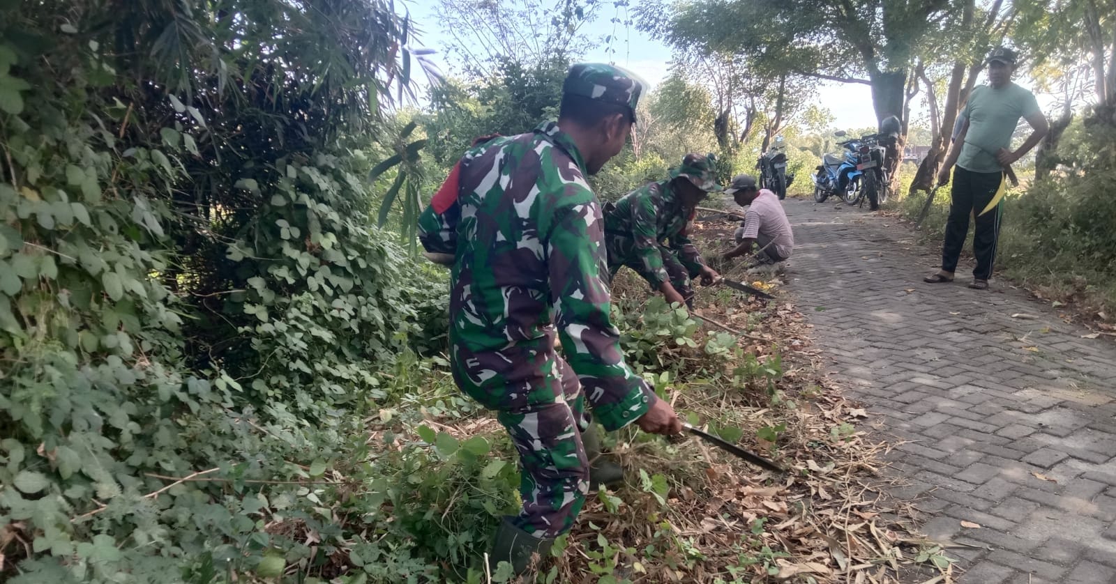 Gotong royong dalam rangka memelihara kekompakan dan kemanunggalan TNI-Rakyat, begitu nampak terlihat dan benar-benar nyata dalam kegiatan di wilayah teritorial Koramil. Hal tersebut terbukti saat anggota Koramil dengan sepenuh hati bersama masyarakat melaksanakan kerja bakti membersihkan rumput liar di pinggir jalan.