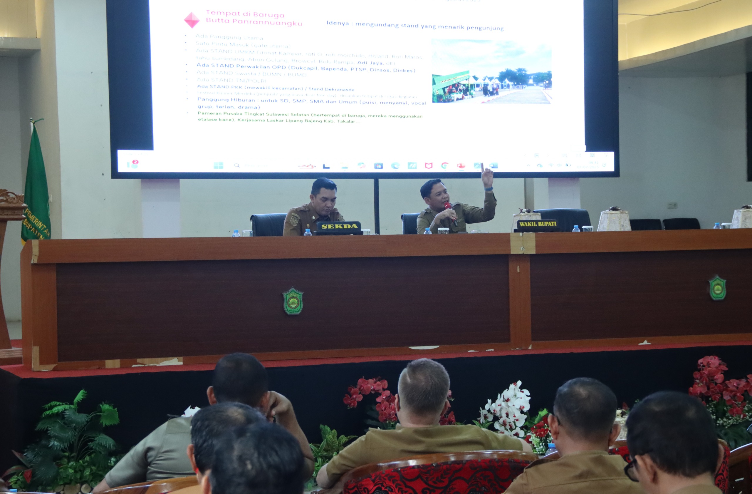 Didampingi Sekda Takalar, Wakil Bupati Takalar dalam memimpin Rapat menyampaikan bahwa kita ingin perayaan HUT RI ke-80 berlangsung semarak dan meriah dengan melibatkan seluruh elemen masyarakat.