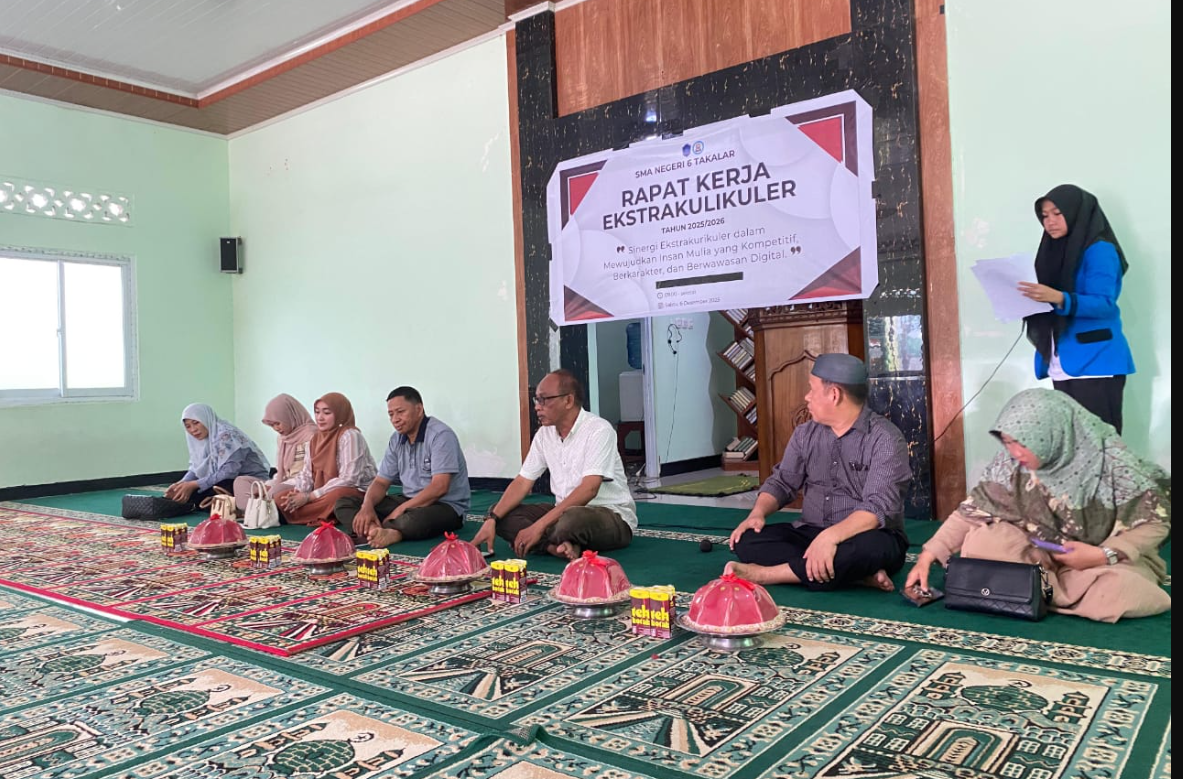 PANDUNEWS.co.id, Takalar – SMA Negeri 6 Takalar menggelar Rapat Kerja (Raker) ekstrakurikuler pada Sabtu, 06 Desember 2025, bertempat di Masjid Darul Ilmi sekolah. Kegiatan ini diikuti oleh para pembina ekstrakurikuler, demisioner ketua dan wakil ketua, pengurus aktif setiap ekstrakurikuler, serta perwakilan OSIS. Agenda raker difokuskan pada penyusunan dan pemantapan program kegiatan ekstrakurikuler untuk tahun ajaran mendatang.