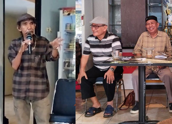 Ahmadi Haruna (paling kiri) tampil membacakan puisi pada acara HUT Ke-3 IPMI dan Diskusi Buku Kumpulan Cerita Pendek, “IBU”, di Kafebaca, Jalan Adhyaksa, No 2, Makassar, Rabu, 24 Desember 2025.