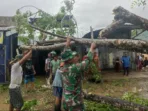 Babinsa Dan Warga Bergerak Cepat Gotong Royong Atasi Pohon Tumbang